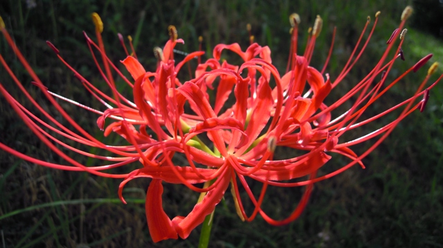 散歩道では、ヒガンバナが咲き始めました。