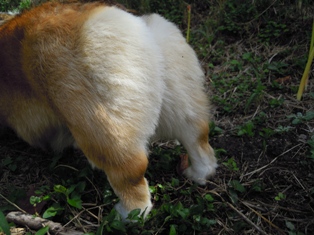 今、お尻の毛をカット中、横になっている間にカット、右はまだこれからです。