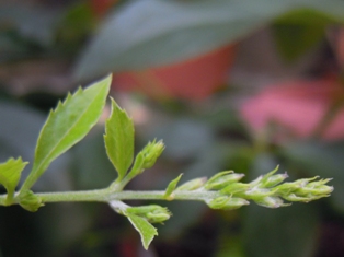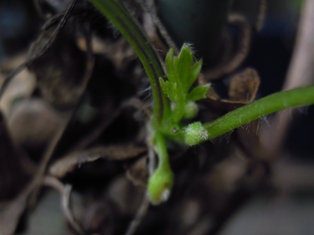 「あげましょうか」と言ってくださる方もいらっしゃいますが、「我が家ではありますが咲きませんから」と、諦めムード。抜いて捨てようかと思ったものの鉢植えにしてみました。いろんなところで、かなり前から咲いているのにやっぱり咲かない、と思っていたら、もしかして、これ、ツボミ?(右上)