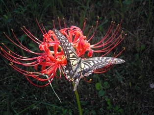 今日も、後ろに咲くヒガンバナを撮ってみました。