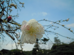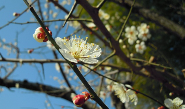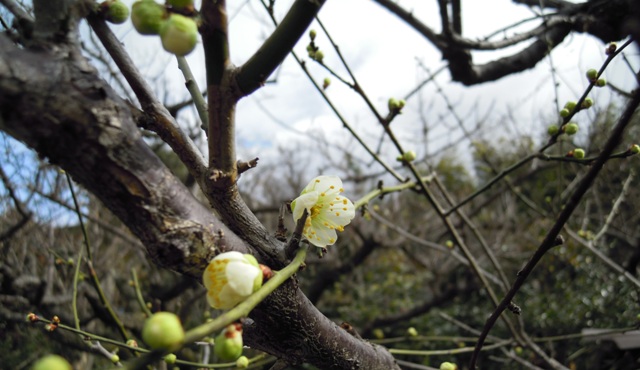 散歩道では梅のお花が咲き始めました。待ちに待った開花です。