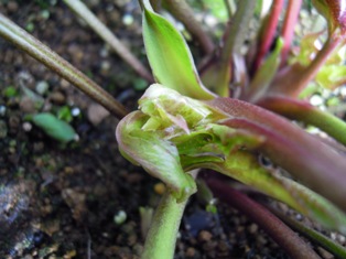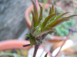 無理やり葉っぱをほどいて~~~ ウ~ン? 蕾出そう? 期待したいけど?