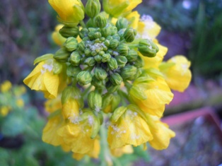 今朝の菜の花は、とても寒そうでした。毎日、お花の蕾を探しながら、楽しみに待つ開花。
