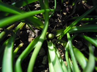 家の庭では、先日芽が出たムスカリ、雨で2日後にはこんなに成長しました。