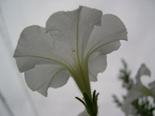 庭の白いペチュニアから空を見てみました。