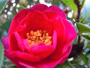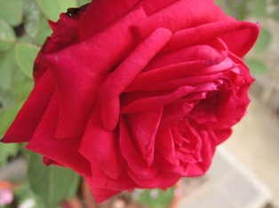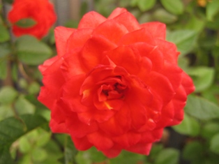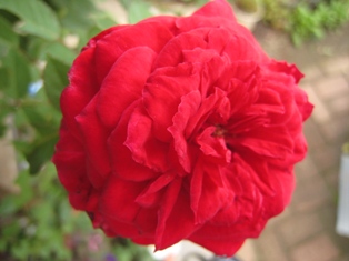 庭では、今日も大輪咲きミニバラ レッドモンテローザ・フォーエバーが咲いています。