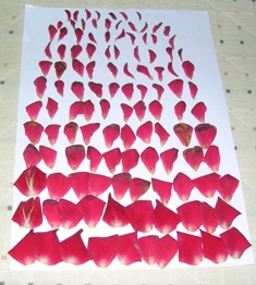 普通のミニバラに比べて大きめの7cmくらい、ロゼット咲き、花弁数100枚とラベルにありましたので、先日散り始めた花びらを数えてみました。