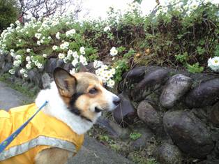 雨降りに頑張って散歩にでたけれども、すぐ帰ってしまいました。