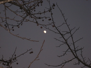 運動公園でいちばん最初に美しい紅葉を見せてくれたモミジバフウは葉をすっかり落として冬支度です。見上げるとお月様…