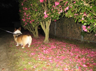 サザンカの花びらが地面をピンクに染めていました。