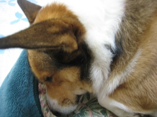 さすけは私の膝の上に頭を突っ込んでいます。