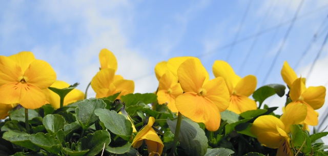 庭のビオラと今日の青空です。