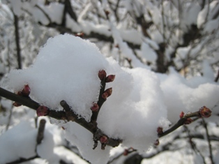 散歩道の梅の木も雪、これから少しずつ膨らんでくる蕾が楽しみな季節です。