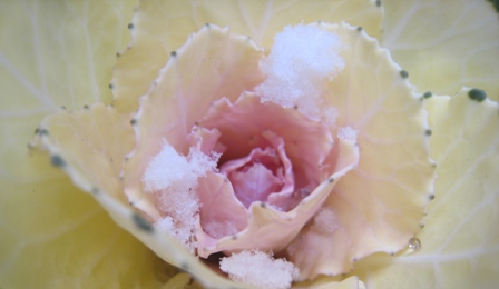 ミニ葉ボタンも雪をかぶっています。