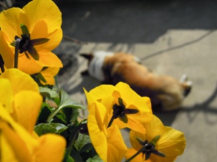 では、明るい色、昨日買ってきたビオラを見てくださいね。