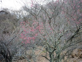昨日の夕方の運動公園では、紅梅のお花が咲いていました。