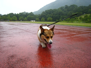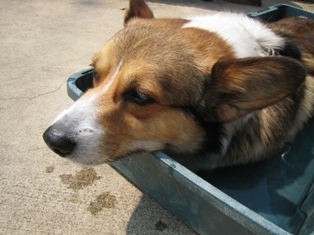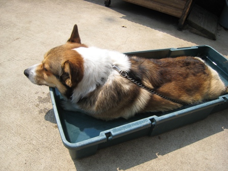 暑い夏は、散歩のあとは必ずプールで休憩です。