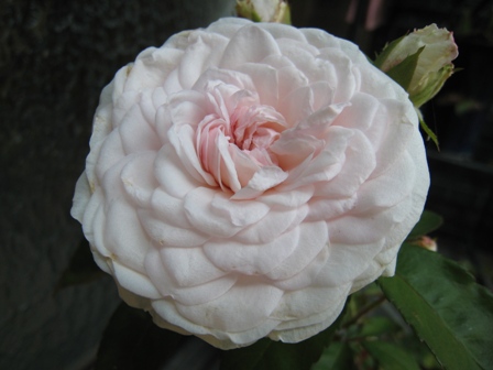 我が家のバラの中で、一番ウドンコ病にかかりやすい粉粧楼、少し風通しのいい場所に置いてみたら、なんとか咲いてくれました。