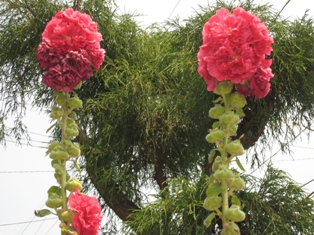 タチアオイ アルセアロゼア ダブルレッド、20日間くらいで咲きあがりました。