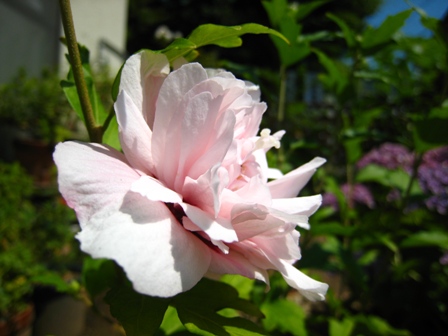 昨年はアリ被害にあったムクゲは、鉢上げし、一つお花がさきました。今年は楽しめそうです。
