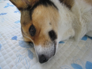 朝8時過ぎ、さすけの散歩は雨が小降りになってから…と、ゆっくりくつろいでいました。