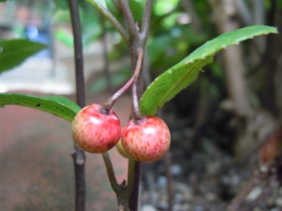 そして、地下茎でドンドンいろんなところに芽を出してくるヤブコウジ ↑ に、いつの間にか実が…