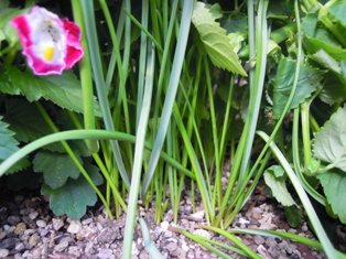 そんなたくさん咲いてくれているトレニアですが、その下からは、植えっぱなし球根の芽、菊も伸びてきました。