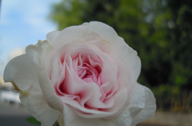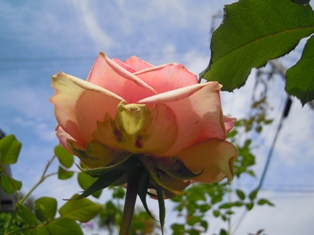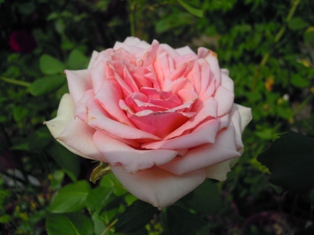 そんな中で、ブライダルピンクが咲きました。花嫁さんをイメージさせる優しいピンクのフロリバンダローズです。 ↓