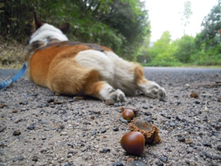 散歩道では、大きなドングリが落ちていました。ちょっと、今年は少ないようなので、心配です。