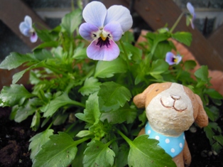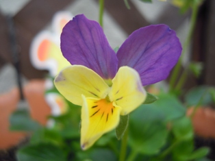 1.5cmくらいのカワイイビオラ、まだお花は少しだけ…