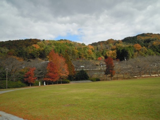 上がってみると公園、向こうに見える山の紅葉がお日さまがあたると、とてもキレイでした。