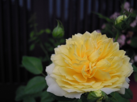 そんな中、我が家の庭では、イングリッシュローズ・エブリンが咲きました。(左下)