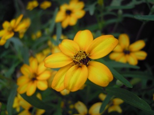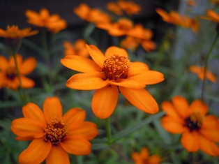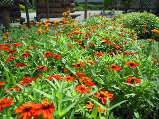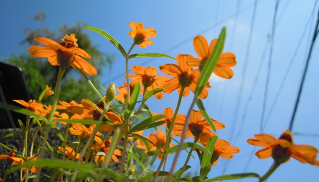 こちらも高温に強いメランポジューム、枯れたジニア・リネアリスの後に植えましたが、植える時期が遅すぎたのか、あまり大きくなりません。(左下)