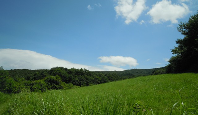 高原の風は爽やかに吹き、出始めたススキの穂が揺れていました。