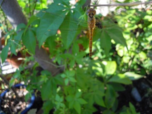 今朝は、トンボが羽を休めていました。そういえば、私が気がつかないのかトンボをあまり見かけません。