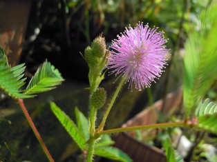 オジギソウは、ネムノキ科オジギソウ属、ブラジル原産で非耐寒性のため、一年草扱いにされることが多いそうです。