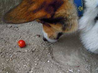散歩の後、サントリー鈴なりミディトマトをやると~