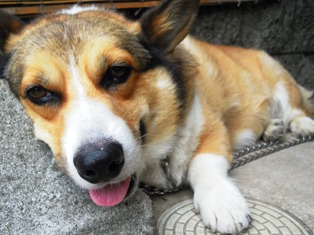 いつも涼しい場所を探して隅っこにいたさすけも、今日は気温が30℃がきれて、少ししのぎやすいのか、家の前でゆったりと寝転んでいました。
