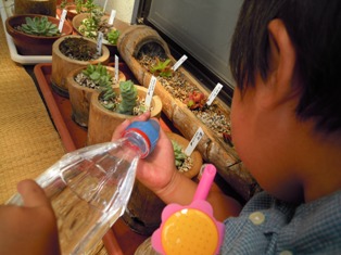 ベランダで育てていますが、先日は孫①ゆっぴーが思い切り水遣りをしていました。水がなくなると「おかわり~」