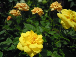 ミニバラ イースターイエローは、花びらが少し少なめ(左下)