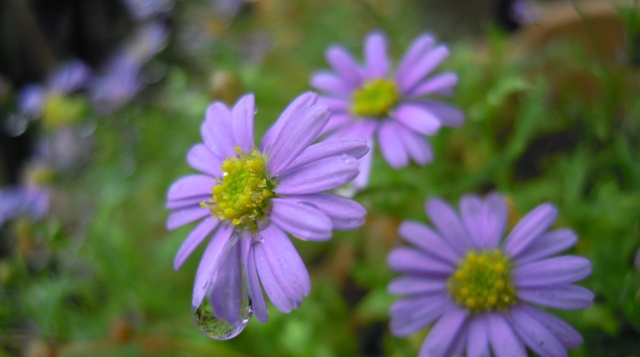 庭では、1cmちょっとのブラキカムが雨に濡れていました。