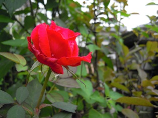 ミニバラ レッドシンフォニーの赤は、目の覚めるような赤、写真ではうまく撮れていませんが…