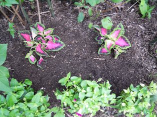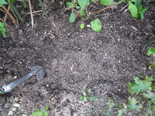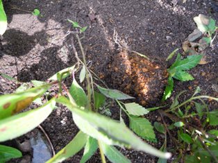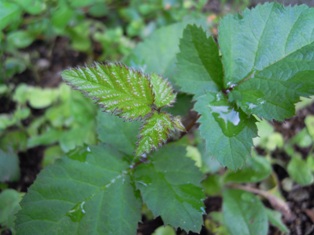 昨年、ここは駐車場にしようと、ブラックベリーは抜き、道行く人に差し上げました。(まだ、お花を植えています)それなのに、これはブラックベリーの苗?(左下)落ちた実から芽がでたのでしょうか。何年たったら、実をつけるのでしょう。