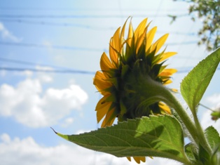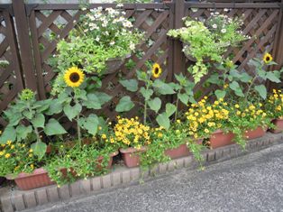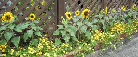 さあ、我が家の道路側のミニひまわり、花数も少しずつ増えました。