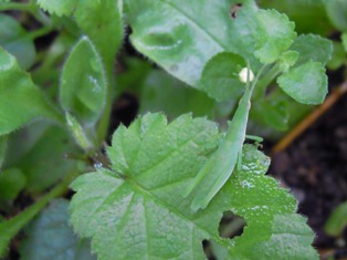 そこらじゅうの葉が穴だらけ、と思ったら、バッタ、葉っぱを食べてる?