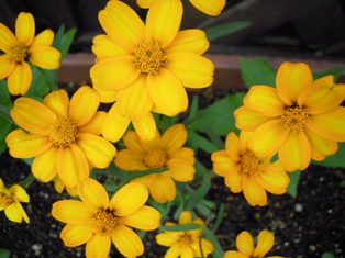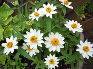向こうに見えるプランターの中には、ジニア・リネアリスの黄色を植えました。