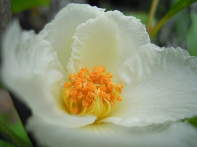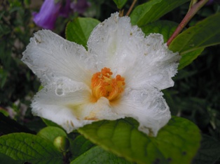 そんな中で、シャラ(ナツツバキ)が一つ咲きました。一日花で、昼過ぎには落ちてしまう、一番花は傷だらけ… 残りは蕾4つで少ないのですが、蕾が出来ただけでもよかったと思います。