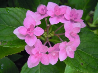 よ~く見てみると、花びらは3枚と4枚があるのに気づきました。どのアジサイもそうなのかな?