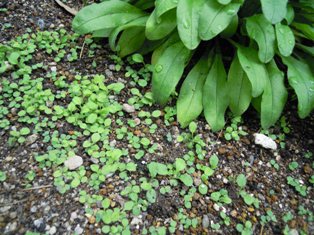 ワスレナグサのこぼれ種から芽がいっぱい出ていました。