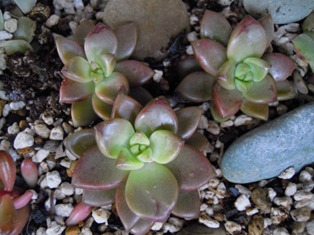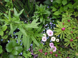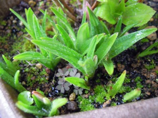 アレナリアモンタナも冬越し。(右下)水遣りの後なので濡れています。
